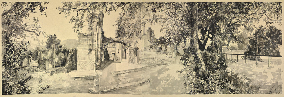This is my favourite piece I did for the show and definitely one of my most ambitious pieces when it comes to composition, scale and detail. It's a classic and beautiful location, some people even find it could be a chocolate box type landscape, and I was initially worried about how I could shake it up and make the landscape more edgy. But upon a second thought back at home i realised, it's a ruin, it's already got so many cool characteristics with its many textures and crumbling but strong silhouette and just dripping with history at a glance, so then it just became a mission to capture it as i saw it.